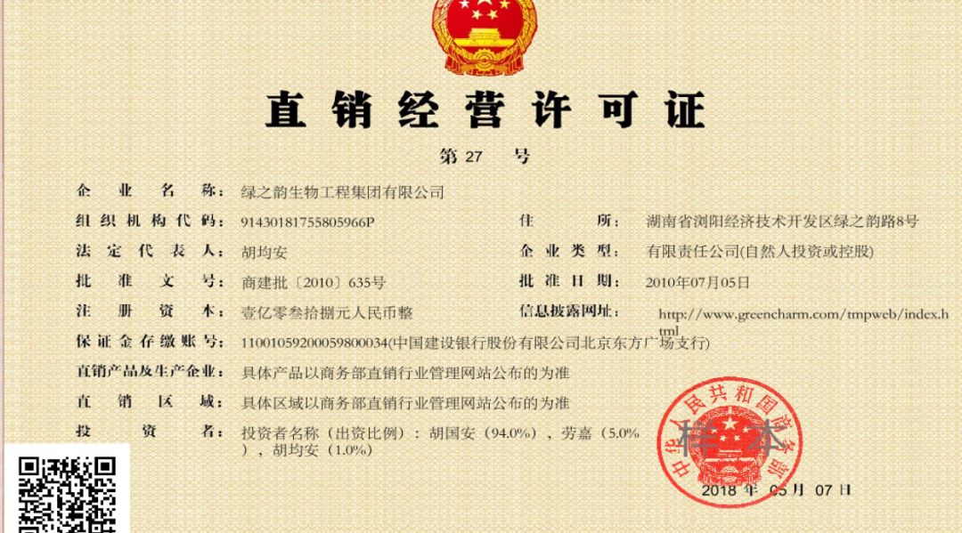 绿之韵生物工程集团有限公司(以下简称绿之韵)是第26家获得直销牌照的企业。