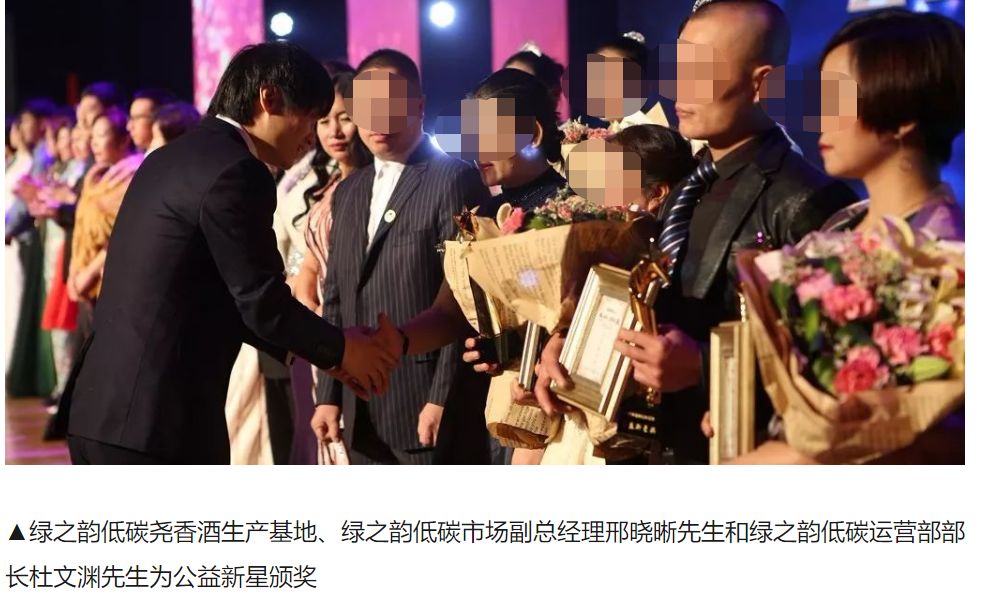 据了解,除了在各种宣传资料中无处不在的“绿之韵尧香酒”字样,李先生在从事产品销售的过程中,曾数次前往绿之韵尧香酒生产基地进行参观现场讲解,而且绿之韵年会的时候也会邀请尧香酒业的会员去参加。每次在尧香酒业酒厂招商的时候大约有300到500人、少的时候也有200多人。绿之韵与尧香酒