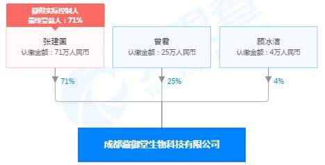 据天眼查APP显示,“藏御堂”商标属于成都藏御堂生物科技有限公司,该公司成立于2015年12月1日,法定代表人、执行董事是顾冰洁,注册资本 100万人民币。张建国为公司大股东持股比例为71%,曾君持股25%,顾冰洁持股4%。