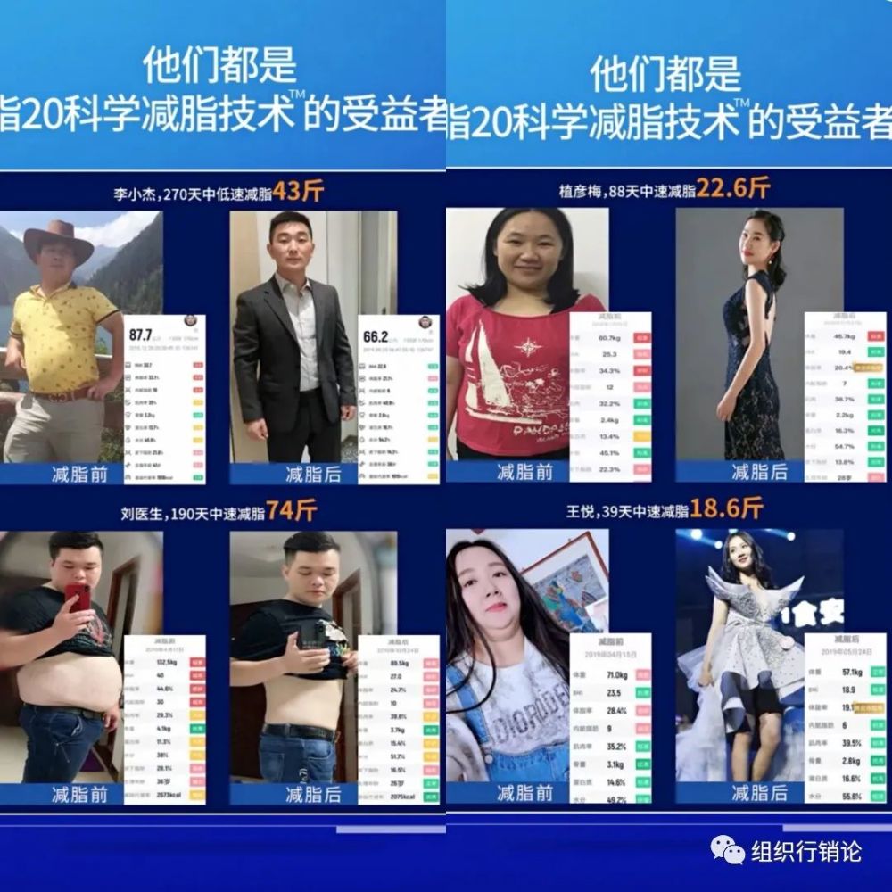 脂20的宣传上,产品是属于低热量,它还属于低升糖, 从源头控制胰岛素的分泌,减少脂肪的合成。脂20的所有成分全部是来自天然的提取物,不含有任何的化学成分。长时间用脂20来代替正餐,不会出现任何的副作用,只会越来越瘦,气色变得越来越红润。在代理的朋友圈能看到大量关于使用脂20产品瘦了几十斤的例子,比如说本来大腹便便,使用完该产品之后就变小蛮腰。更离谱的是脂20宣传有冶疗糖尿病的功效。脂20传销