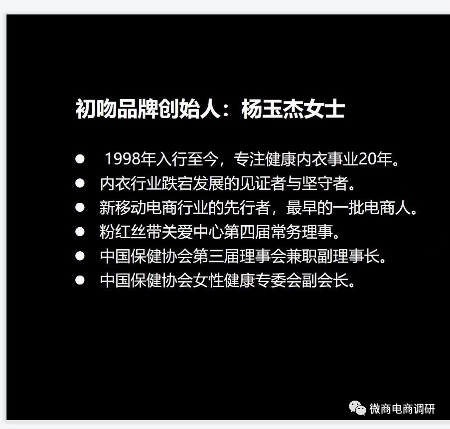 与此同时,在初吻的各种招商资料里,我们也能找到许多代理“成功”的例子:我有过8年的茶叶店经商经历,在生意萧条的时候遇到了初吻,在离预产期只有几天的时候毅然投资98万,升级做了初吻的执行董事,大健康产业下,初吻活氧内衣是最好的选择……