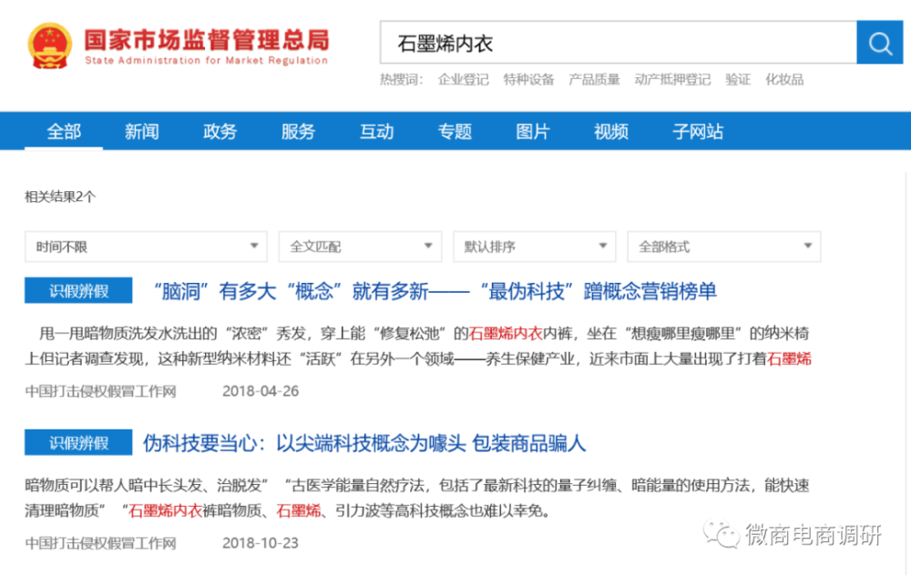 在这种背景下,许多产品都会冠以这种技术并引用相关的专家为其做宣传,打着石墨烯招牌的内衣内裤到处都是,对此,我国市场监督管理总局也已多次对此类市场进行过打假整治。