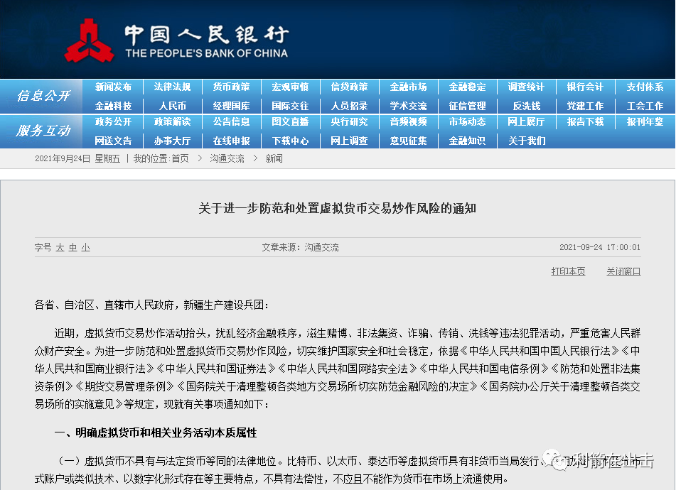 3、9月24日,中国人民银行再次发布了《《关于进一步防范和处置虚拟货币交易炒作风险的通知》,搞虚拟币的人要远离。