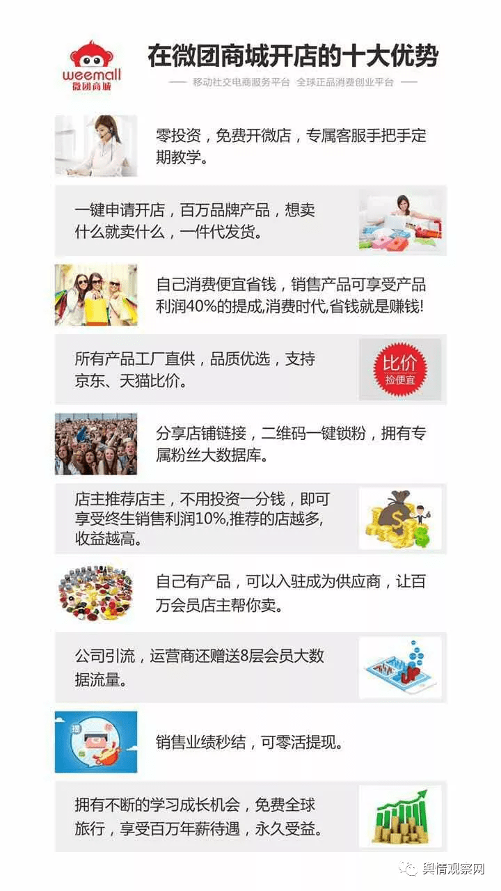 微团商城是中国首家以移动互联网作为主要载体的多重营销模式,实现大数据整合的平台,是一个不仅让消费者省钱,还可以0成本创业的综合性互联网平台。