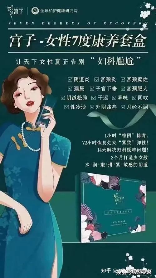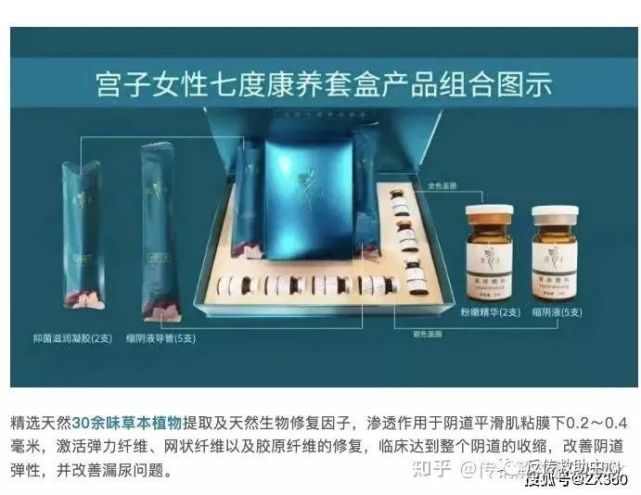 宫子·七度康养套盒精选天然30余味草本植物提取及天然生物修复因子,是国人康养宫子品牌旗下主打市场的明显产品,同时也是被旗下代理经销商宣传得神乎其神的一款产品,不仅能治疗各种妇科疾病,而且还能使阴道收缩,改善阴道弹性变粉色,并改善漏尿问题。
