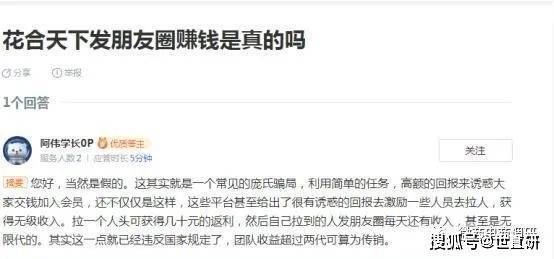 也有网友称花合天下模式为庞氏骗局,利用简单的任务,高额的回报来诱惑大家交钱加入会员,并激励参与人员去拉人以获得无级收入,涉嫌传销。