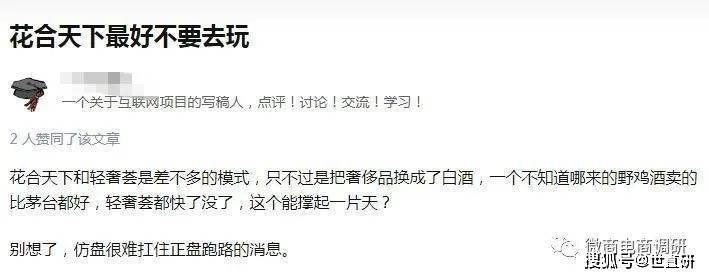 入门费、拉人头、团队计酬,花和天下的这种模式已经符合《禁止传销条例》中定义的传销行为。对于花合天下这种模式,有网友早就看穿其本质,称其与涉嫌资金盘的轻奢荟模式相似,建议大家不要参与。花合天下传销