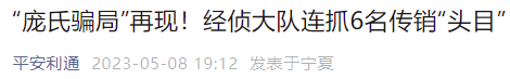5月8日,宁夏吴忠市公安局利通区分局官方微信公众号“平安利通”发布《“庞氏骗局”再现!经侦大队连抓6名传销“头目”》一文披露,利通区公安分局经侦大队成功打掉盘踞在利通区老旧小区出租房内以销售“海之圣”保健品为名的聚集型传销组织,依法刑事拘留传销骨干成员6人。
